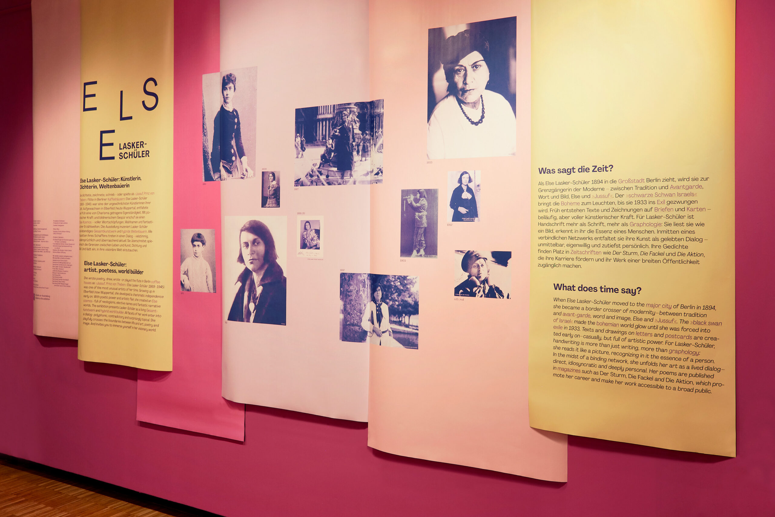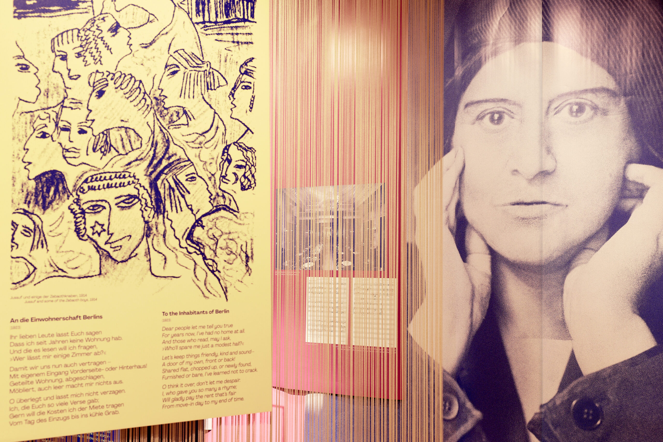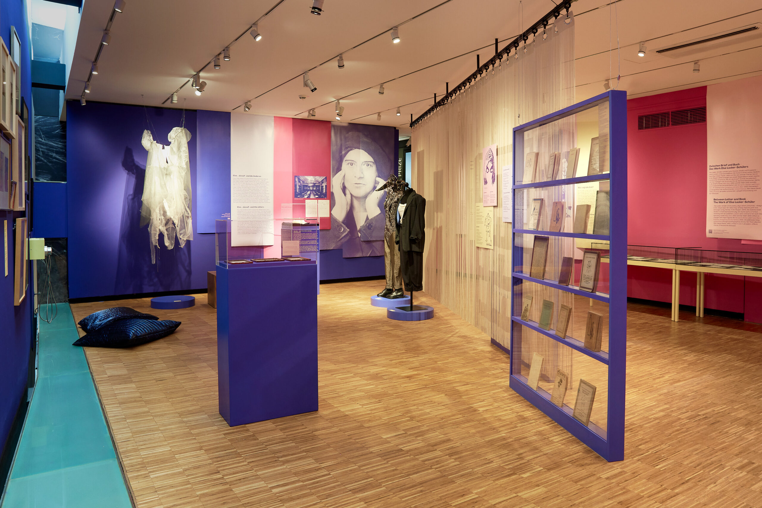 The colourfulness, materiality and atmosphere of the design concept reflect Lasker-Schüler’s expressive yet sensitive personality, and create a space in which her art can be experienced sensually.