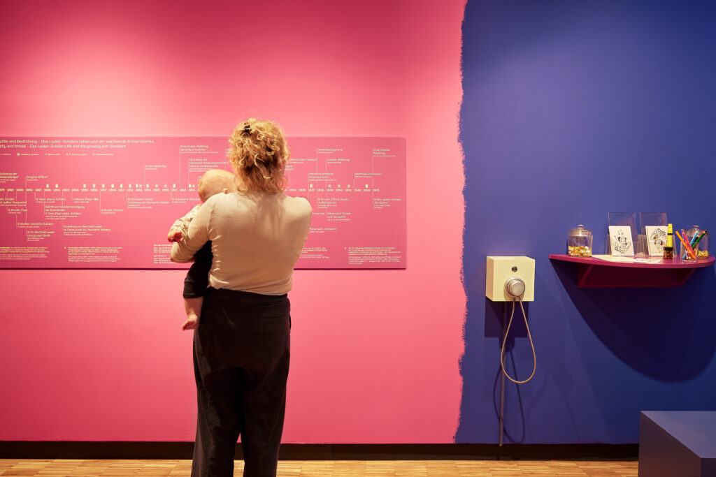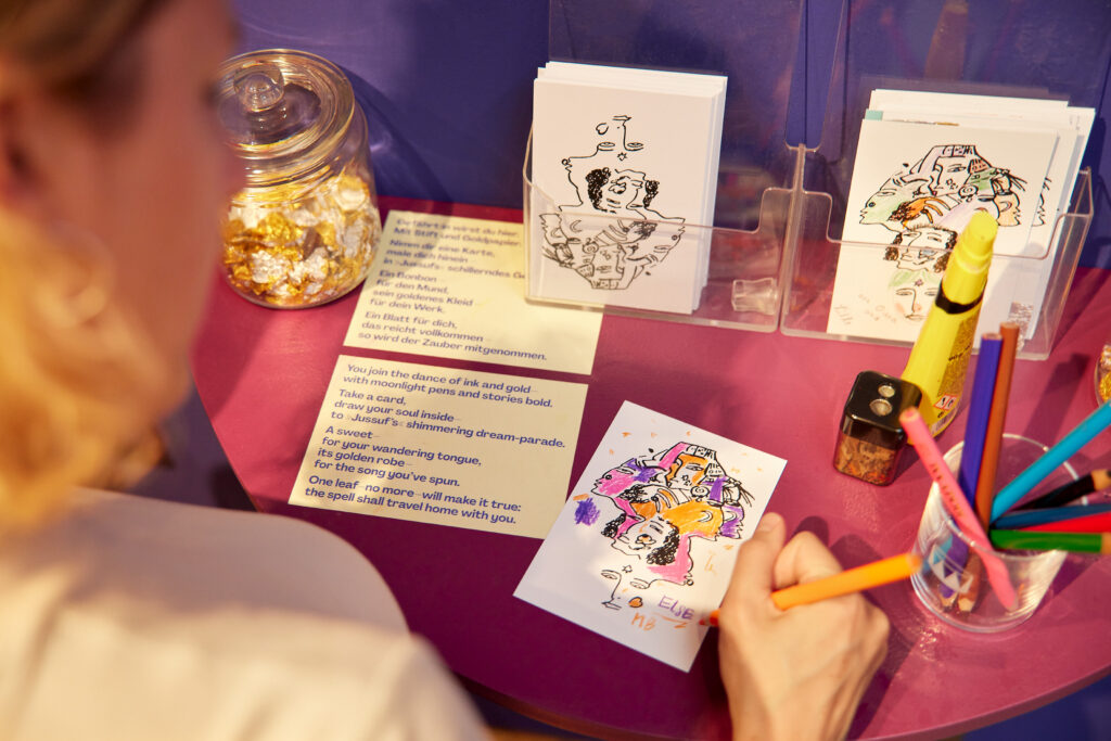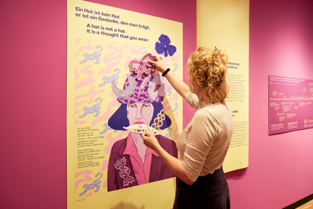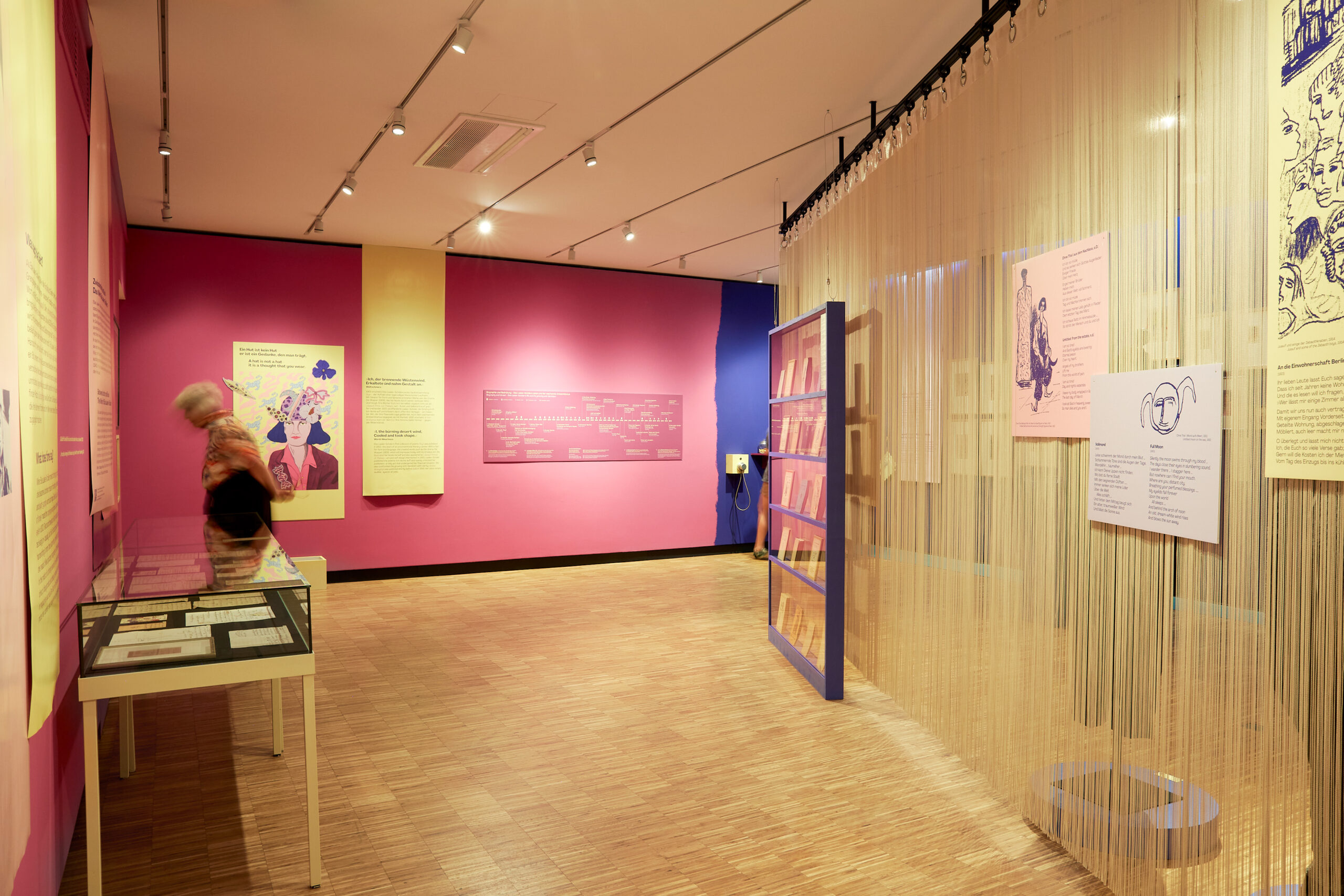 The colourfulness, materiality and atmosphere of the design concept reflect Lasker-Schüler’s expressive yet sensitive personality, and create a space in which her art can be experienced sensually.