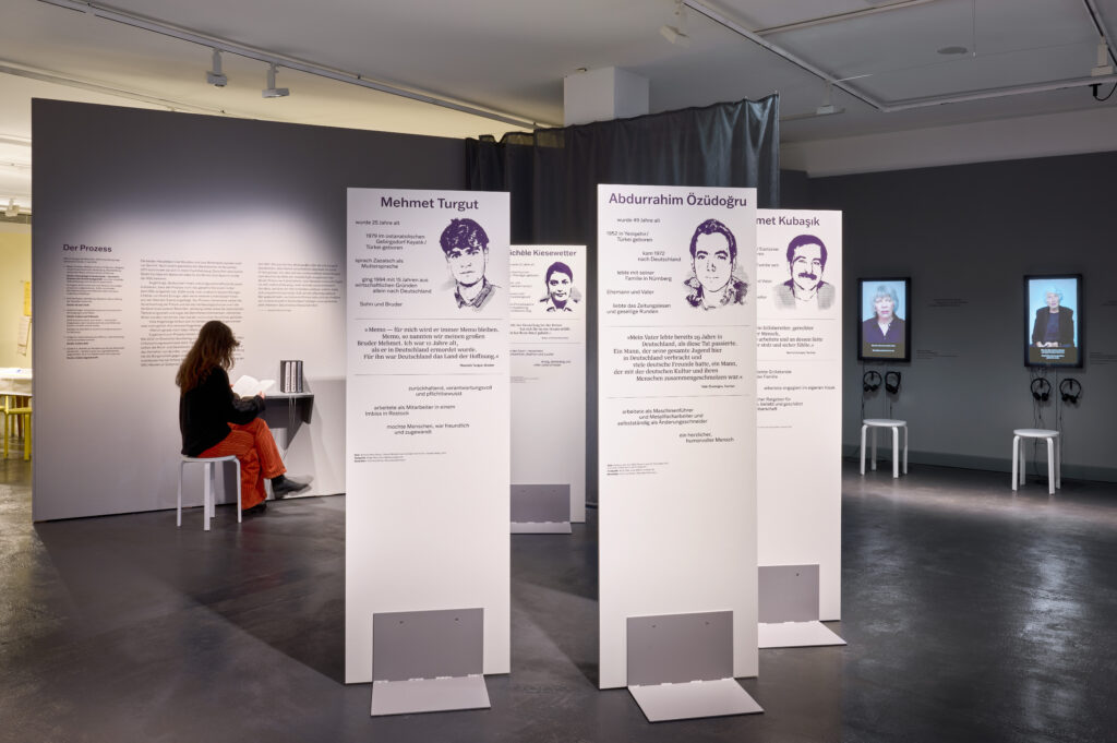 Vorstellung der 10 Opfer des NSU auf Displays mit Biografien und Illustrationen