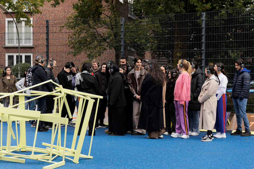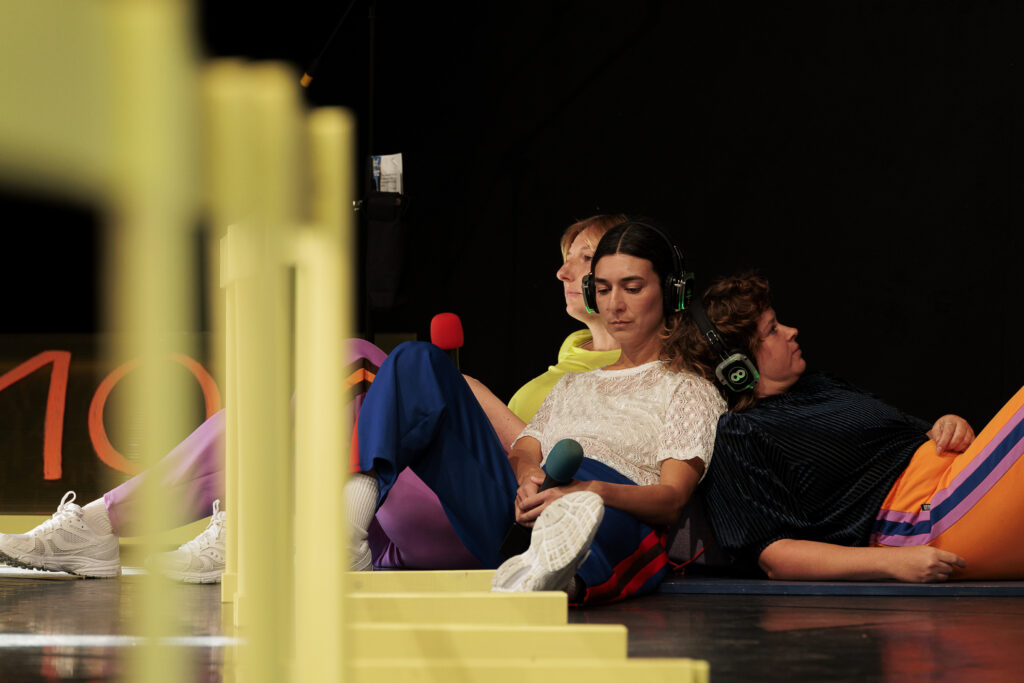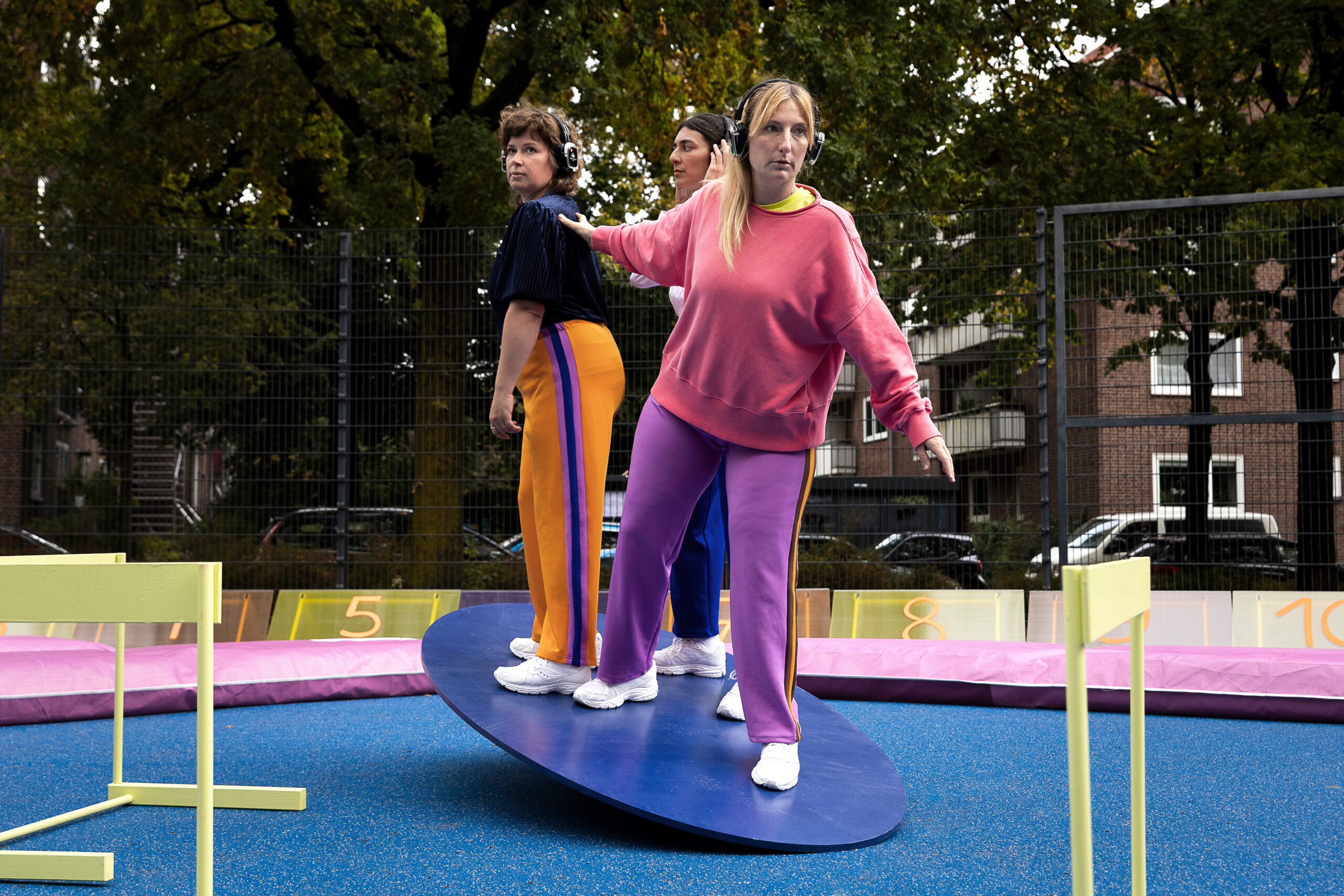 Gemeinsam mit der Glitch AG haben wir das Outdoor-Audio-Game konzipiert und die Szenografie dafür gestaltet und umgesetzt. Die mobilen Elemente Hürden, Balance Board, Sitzkissen und beschreibbare Tafeln bilden das flexible und wandelbare Bühnenbild.
