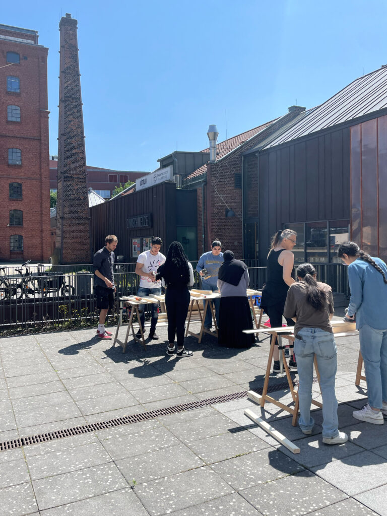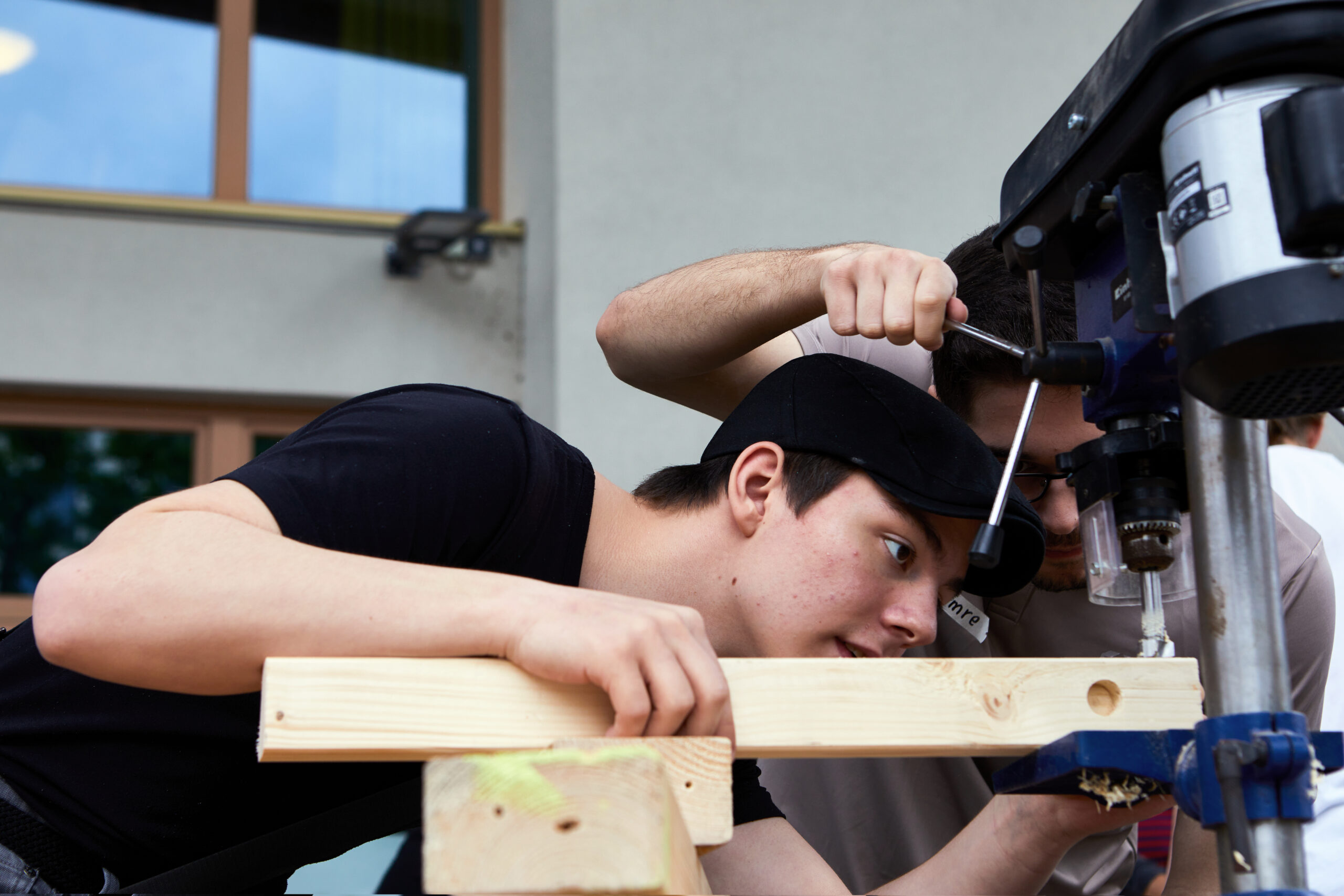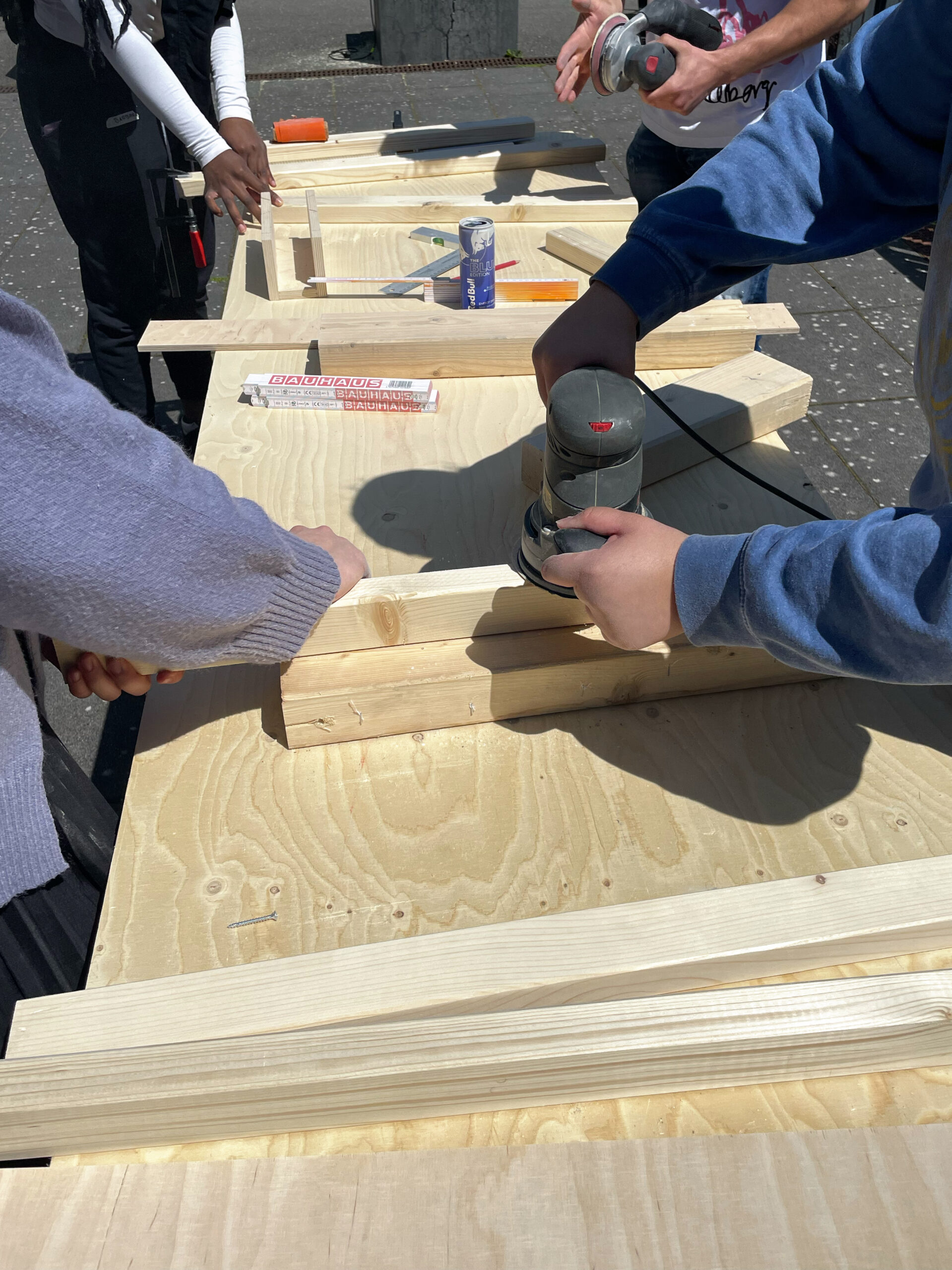 Dabei wurde ein Teil der Elemente gemeinsam mit den Schülerinnen und Schülern in Bauworkshops umgesetzt.